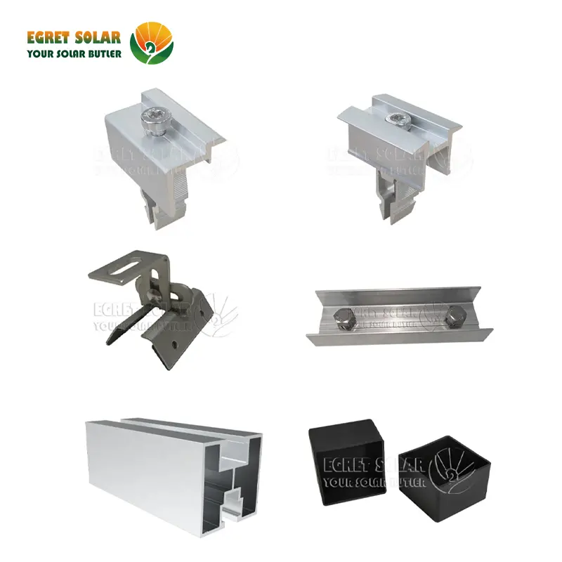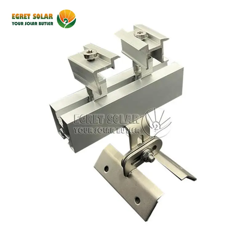 Egret justerbar solcelle -trapesoid metall takmonteringsstruktur gir en pålitelig løsning for solcelleanlegg på disse spesifikke trapesformet taket. Det er justerbarhet og design tilbyr installatører fleksibilitet og effektivitet.