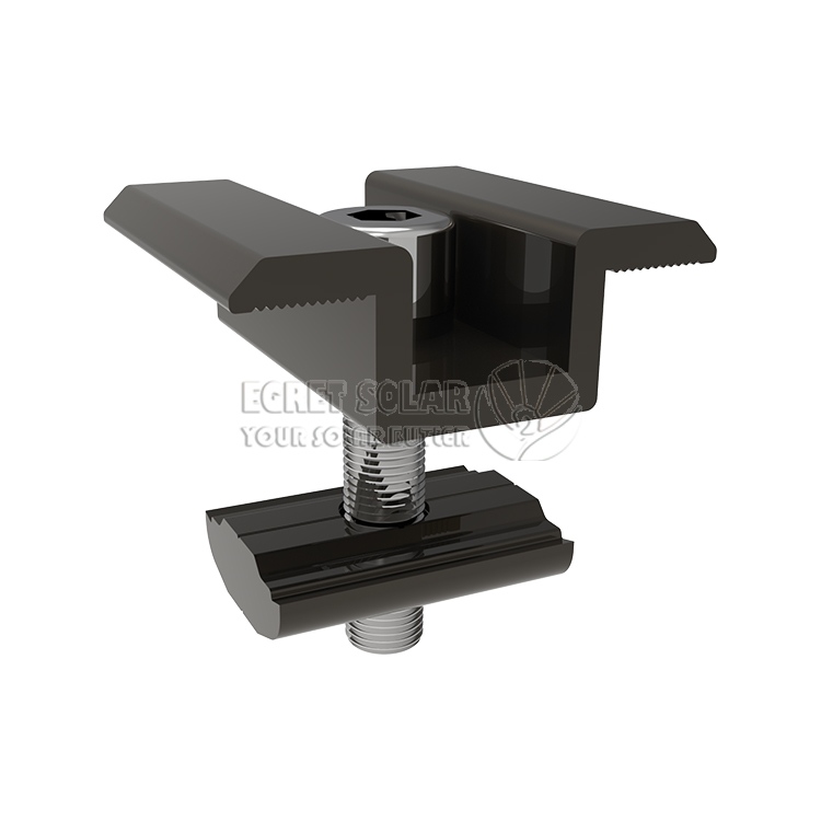 Utformingen av produktet løser nøkkelproblemene som ofte oppstår i praktisk prosjektering, den tradisjonelle endetrykkblokken er utsatt for rotasjon og forskyvning når den strammes,Egret Solardesign avendeklemmer for montering av solcellepaneltrevinklet lagerflate designet, utviklet og produsert konverterer rotasjonskraften som genereres ved festing til en vertikal nedadgående låsekraft gjennom en unik kontaktflate, noe som løser dette problemet fundamentalt og gjør installasjonen mer fast. T-boltdesignet med anti-skli tenner Boltene kan klemmes inn i styreskinnenes spor for fiksering, noe som gjør enhåndsbetjening mulig og gjør installasjonen mye enklere.