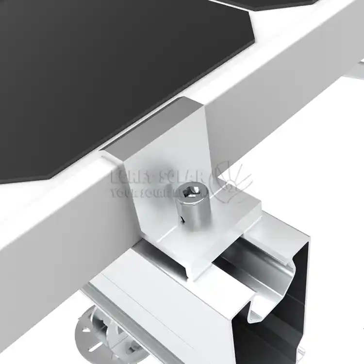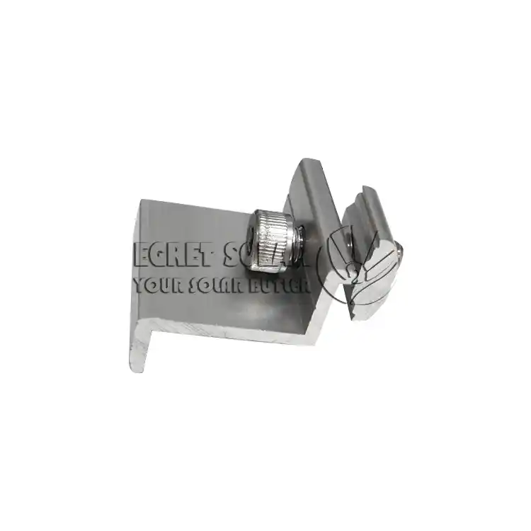 endeklemme solenergifester rammen til den ytterste komponenten i hver rad til enden av skinnen for å forhindre at den glir av. Samtidig hjelper det å trykke på kantene på komponentene til å redusere invasjonen av vind, regn og støv fra sidene.Den er plassert i kanten av arrayet og bærer direkte den sterkeste vindløftekraften (oppovertrekkkraften) og vindsugekraften,Det er et nøkkelkraftbærende punkt i den vindbestandige designen og må ha tilstrekkelig mekanisk styrke.