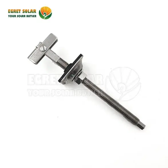 Som en fikseringskomponent for solmonteringsstrukturer, er denne fotovoltaiske studbolten en nyskapende design for stål- eller trebjelke. Det gir høy effektiv løsning for installasjon av solcellepanel.